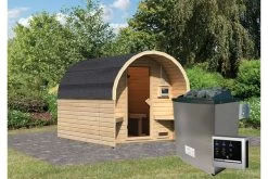 KARIBU Fasshaus 2 Saunahaus, Naturbelassen, Fichte, 219 X 295 X 218,5 Cm, Fronteinstieg, SET