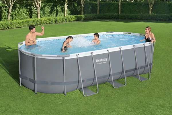 Der ovale Power Steel Pool kann mit einer Größe von ca. 549 x 274 x 122 cm mit maximal 13.430 Litern gefüllt werden und bietet so für mehrere Personen ausreichend Platz. Durch das spezielle TriTech Material des Herstellers ist der Pool belastbar, strapazierfähig und äußerst langlebig, so dass Sie viele Sommer den heimischen Badespaß genießen können. Das von außen, einmal komplett um den Pool gehende PVC-Band sorgt für extra Stabilität der Seitenwände. Mit im Lieferumfang enthalten sind neben der Filterpumpe, eine passende Filterkartusche, die benötigten Schlauchverbindungen, eine stabile Sicherheitsleiter, ein Chemikaliendosierer und ein selbstklebender Reparaturflicken.