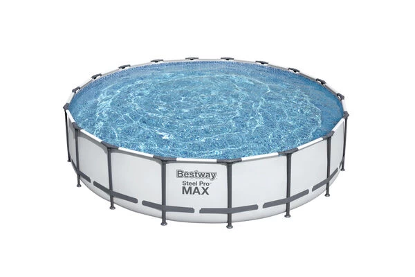 Der Steel Pro MAX kann mit einer Größe von ca. Ø 549 x 122 cm mit maximal 23.062 Litern gefüllt werden und bietet so für mehrere Personen ausreichend Platz. Durch das spezielle DuraPlus Material des Herstellers ist der Pool belastbar, strapazierfähig und äußerst langlebig, so dass Sie viele Sommer den heimischen Badespaß genießen können. Das von außen, einmal komplett um den Pool gehende PVC-Band sorgt für extra Stabilität der Seitenwände. Mit im Lieferumfang enthalten sind neben der Filterpumpe, eine passende Filterkartusche, die benötigten Schlauchverbindungen, eine stabile Sicherheitsleiter, eine PVC-Abdeckplane und ein selbstklebender Reparaturflicken.
