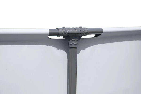 | Extra stabil Die extrem starre, ovale Rahmenkonstruktion mit Korrosionsschutz sorgt für eine erhöhte Festigkeit und Haltbarkeit. Das von außen, einmal komplett um den Pool gehende PVC-Band sorgt für extra Stabilität der Seitenwände. | |