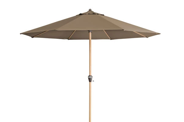 Mittelstockschirm Alu Wood mit Kurbelmechanismus in Greige