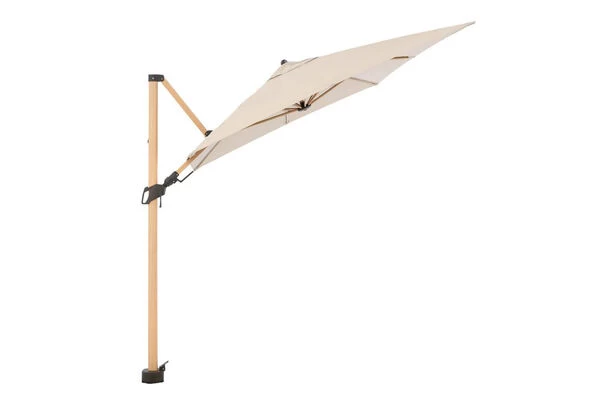 Groß, praktisch, modern – Der DOPPLER Alu Wood Pendelschirm in Natur mit Kurbelmechanismus