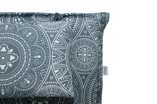 Der Bezug wird aus 100% Polyester (155 g/m²) gefertigt und bietet, dank des modernen, Mandala ähnlichen Designs und den ziervollen Steppnähten, ein optisches Highlight für Ihre Sitzmöbel. Durch das Haltegummi an der Rückseite und die Bindekordeln an der Sitzfläche lässt sich die Auflage kinderleicht fixieren und verrutscht nicht so leicht, auch wenn die Liege eine glatte Oberfläche besitzt. Dank der Maße von ca. 200 x 60 cm passt sich die Auflage perfekt an die meisten Liegen an. Der Komfort kommt selbstverständlich nicht zu kurz – dafür sorgen das abnehmbare Kopfkissen und der weiche, ca. 7 cm starke Kern, bestehend aus einer Schaum- und Polyestervliesfüllung. Ob zum Sonnen oder bei der Familienfeier – diese Auflage macht stets eine gute Figur. Der Bezug lässt sich durch einen Reißverschluss ganz leicht abnehmen und bei maximal 30°C waschen.