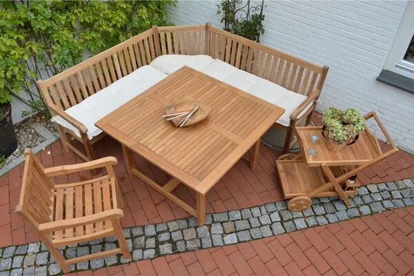 Stilechte Eckbank aus hochwertigem SVLK-zertifiziertem Teak