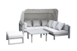 OUTFLEXX Willis Loungebett, Hellgrau, Alu/Polyester, Ø175 X 60cm, Runde Sonneninsel, Inkl. Kissen