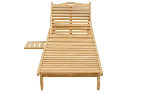 Gartenliege mit Rädern und Tablett aus SVLK-zertifiziertem Teakholz