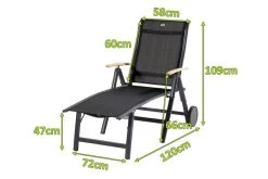 HARTMAN Alice Sonnenliege, Xerix/schwarz, Alu/Textilen, 179 X 75,5 X 33 Cm, FSC Teak-Armlehnen