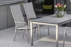 STERN Cardiff Stapelsessel, Silber/taupe, Edelstahl/Textil, Ca. 61x57x92 Cm, Armlehnen FSC-Teak