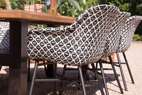 Der „Delphine“ Armlehnensessel mit Maßen von ca. 63 x 61 x 83,5 cm (L/B/H) bietet außerordentlichen Sitzkomfort. Das bequeme, um ein Aluminiumgestell geflochtene Kunststoffgeflecht aus Polypropylen passt sich perfekt Ihrem Körper an und sorgt so für ein rundum angenehmes Sitzgefühl. Armlehnen sorgen dabei für zusätzlichen Komfort und machen das Sitzen zu einem wahren Erlebnis, während die Fußkappen an den Stuhlbeinen unschöne Kratzer auf Ihrem Terrassenboden vermeiden.