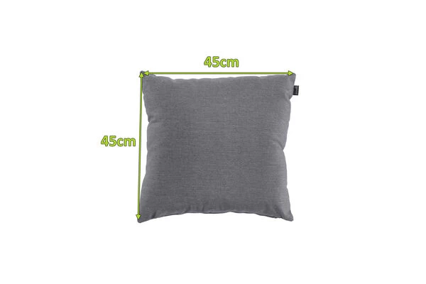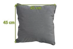 Es kann mit seinen Maßen von ca. 45 x 45 cm entweder nur zu Dekozwecken genutzt werden oder aber um den Sitzkomfort dank seiner Dicke von ca. 10 cm noch mehr zu steigern. Außerdem verfügt der Kissenbezug über einen Reißverschluss und ist damit waschbar und besonders pflegeleicht. Dabei ist es besonders komfortabel, hautsympathisch und kann sich durch seine zahlreichen technischen Vorteile von herkömmlichen Outdoor-Kissen abheben und daher zum langlebigen Begleiter auf Ihrer Lounge werden, an dem Sie viele Jahre Freude haben werden. Der Kissenbezug ist komplett aus dem Sunbrellastoff gefertigt und in der modernen Farbe Flanelle (Grau) gehalten.