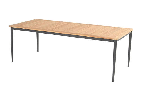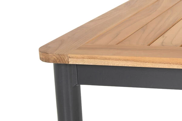 Das Set passt zu jedem Gartenstil und bietet genügend Platz für 8 Personen, damit Sie gemütliche Grillabende mit Ihrer ganzen Familie verbringen können. Die Leichtigkeit des modernen Designs werden Sie in Ihrem Garten nicht mehr missen möchten. Genießen Sie den Komfort, der jeden Aufenthalt im Freien zu etwas Besonderem werden lässt – die hochwertigen und pflegeleichten Materialien bieten Ihnen den nötigen Schutz, wenn das Wetter einmal nicht mitspielen sollte.Das Gestell des Tisches wird aus pulverbeschichtetem und rostfreiem Aluminium gefertigt. Wetterumschwünge und Regen machen diesem Gestell nichts aus. Rost hat keine Chance. Dieses im Trend liegende Material ist leicht, robust und stabil. Es ist pflegeleicht, wetterfest und ganzjährig für den Außeneinsatz geeignet. Kein Wunder also, dass viele der hergestellten Gartenmöbel inzwischen mit Aluminium verarbeitet werden.Die Tischleisten aus FSC-zertifiziertem Teakholz verleihen diesem Tisch einen ganz besonderen Charme. Darüber hinaus ist Teakholz besonders witterungsbeständig und hält sowohl Hitze und Frost, als auch Regen und Feuchtigkeit aus. Es hat außerdem aufgrund des hohen Anteils an holzeigenen Ölen einen natürlichen Schutz gegen Pilze und andere Schädlinge.Die Multipositionssessel von Hartman wissen durch die qualitativ hochwertige Verarbeitung und Stabilität zu überzeugen. Wegen der Armlehnen aus FSC-zertifiziertem Teakholz entsteht eine unverwechselbare Optik, die die Stühle zu einem echten Hingucker machen. Dank der vorteilhaften Stoffzusammensetzung der schwarzen 4×4 Textilenbespannung aus 70% Polyvinylchlorid und 30% Polyester profitieren Sie von einer langen Haltbarkeit. Sie werden gar nicht mehr aufstehen wollen, denn das witterungsbeständige Material ist durch seine Flexibilität auch ohne Auflagen sehr bequem. Das Gestell aus robustem Aluminium sorgt für ein geringes Eigengewicht von nur ca. 5,3 kg, sodass sich die Stühle kinderleicht verschieben oder an die gewünschte Position tragen lassen. Trotz des leichten Gewichts sind die Sessel äußerst stabil und können mit bis zu 130 kg belastet werden. Um Ihren Terrassenboden beim Verschieben zu schützen, verfügen die Füße über praktische Bodenschoner.