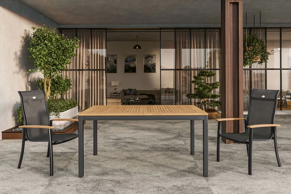 | Stilvolles Design Egal ob Tische oder Stühle der South Wales-Serie, die schlichte Kombination von Aluminium und Holz wirkt zeitlos und elegant. |
