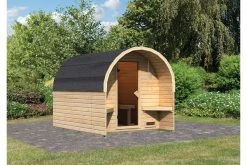Saunahaus Fasshaus 2 aus Fichtenholz mit Fronteinstieg in verschiedenen Ausführungen von KARIBU