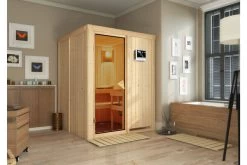 Sauna Norin aus Fichtenholz mit Fronteinstieg inkl. bronzierter Tür in verschiedenen Ausführungen von KARIBU