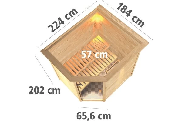 Sauna Mia von KARIBU mit div. Tür-, Kranz-, Ofen- und Steuerungsoptionen