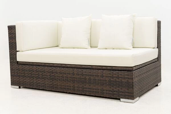 ModulelementeLine: Polyrattan 2-Sitzer Ecksofa mit Kissenboxfunktion in braun-marmoriert