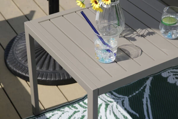 | Strapazierfähige und pflegeleichte Materialien Aluminium und Textilene werden sorgfältig ausgesucht und verarbeitet. Aufgrund ihrer Wetterfestigkeit und Eleganz sind sie ein idealer Baustoff für Gartenmöbel.