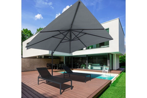 OUTFLEXX Ampelschirm, Anthrazit/grau, Alu/Polyester, 350x350cm, Inkl. Plattenständer