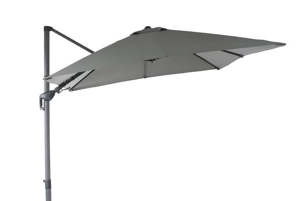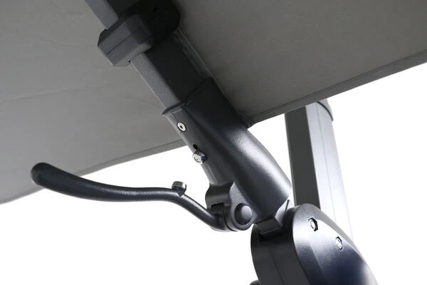 Die Twist-Funktion dieses Ampelschirms ermöglicht eine besonders komfortable Einstellung des Schirmdachs, so dass Sie es immer genau dem Sonnenstand entsprechen ausrichten können: