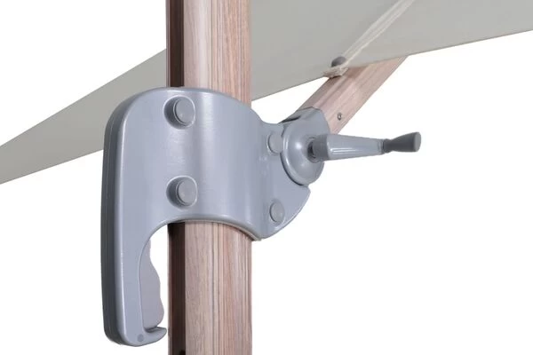 - Kurbel lässt sich in den Schirmstock umstecken, dann kann der Schirm um 360° gedreht werden.