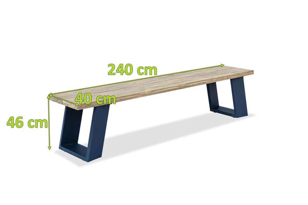 Nie war ein Rückzugsort stylischer: Mit Maßen von ca. 240 x 40 x 46 cm bietet die Bank bis zu 6 Personen Platz. Hier können Sie gemeinsam den Tag ausklingen lassen! Das wiederverwertete Teakholz verleiht ?Zero? ein ganz besonderes Flair, jedes Möbelstück ist so einzigartig wie die Geschichte des verwendeten Holzes. Auch die Maserung ist individuell, so dass jede Bank ein wahres Einzelstück ist. Die rustikal gebürstete Oberfläche sorgt dafür, dass die natürliche Struktur des Holzes erhalten bleibt und die Maserung besonders gut zur Geltung kommt. Im Zusammenspiel mit dem ausgefallenen A-Gestell aus Aluminium verleiht sie der Bank ihr außergewöhnliches Aussehen, das sich harmonisch in jedes Gartendesign einfügt und zum Hingucker wird.
