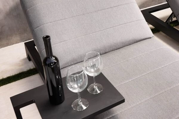 Dieser praktische und stylische Beistelltisch von OUTFLEXX® bietet dank seiner Maße von ca. 48 x 32 x 53 cm genügend Platz für kleine Snacks oder Getränke – so steht einem gemütlichen Mittag mit der Familie nichts im Wege, Sofafeeling inklusive. Besonders praktisch: Dank seiner speziellen Form kann der Tisch auch ganz leicht auf ein Sofa oder eine Liege draufgeschoben werden, so erhält man eine integrierte Ablagefläche. Das Möbelstück besteht aus Aluminium, dies macht es nicht nur stabil, sondern sorgt auch dafür, dass es sich aufgrund des geringen Gewichts von ca. 3,8 kg ganz leicht hin und her stellen lässt. Das Aluminiumgestell wurde mit einer schwarzen Pulverbeschichtung versehen, so ist es besonders wetterfest und passt außerdem wunderbar zu allen möglichen Terrasseneinrichtungen.