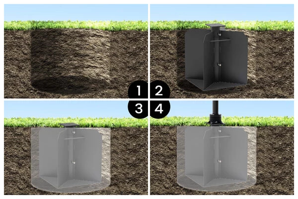 Dieser Bodenanker sorgt für einen sicheren Stand Ihres XXL Ampelschirms und ist dabei fast unsichtbar.
