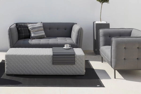 Diese Loungebank von OUTFLEXX® ist ein wahres Multitalent, ob sie ihn nun als zusätzliche Sitzmöglichkeit für 2 Personen oder als praktischen Loungetisch nutzen. Mehrere Elemente der Cozy Serie zusammengesetzt liefern ein gemütliches Loungeset – hier sind Sie ganz frei in Ihren Möglichkeiten. Die Bank hat ein Gesamtmaß von ca. 148 x 50 x 42 cm. Der Oberstoff in der Sunbrellafarbe flanelle unterstreicht den einzigartigen Charakter der Möbel der Cozy Serie. Ein besonderes Highlight ist die dekorative Steppung des Stoffes. Für das Gestell wird robustes, pulverbeschichtetes Aluminium verwendet, welches mit der Schaumstoff-Sunbrella Kombination eine solide Sitz- und Liegemöglichkeit bietet. Bitte beachten Sie, dass das abgebildete Tablett nicht im Lieferumfang enthalten ist, dieses können Sie separat als Zubehör erwerben.