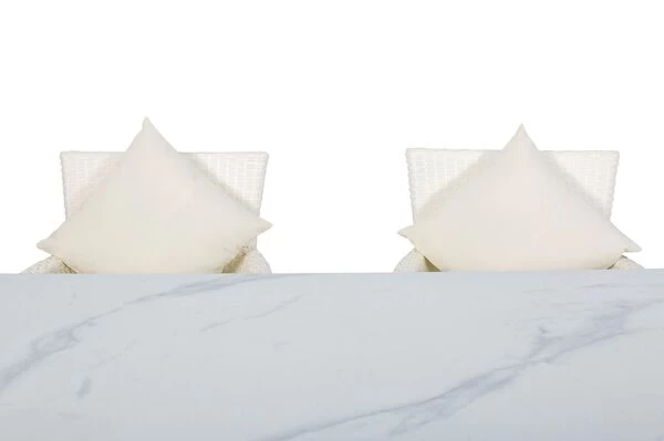 Das Untergestell der Möbel besteht aus Aluminium, dies macht sie nicht nur stabil, sondern sorgt auch dafür, dass sie sich aufgrund des relativ geringen Gewichts (je Sessel ca. 6,8 kg, Tisch ca. 42,8 kg) ganz leicht hin und her stellen lässt. Das Aluminiumgestell wird mit Polyrattangeflecht bespannt. Das flache Geflecht ist in der Farbe weiß (Faser w29) gehalten und passt so wunderbar zu allen möglichen Terrasseneinrichtungen. Gemütliche Sitz- und Rückenpolster (100 % Polyester) mit einer Stärke von ca. 5 cm sorgen für höchsten Sitzkomfort. Farblich sind die creme-weißen Polster perfekt auf das Geflecht abgestimmt. Die synthetische Faser Polyester wird für ihre Hitzebeständigkeit und optimalen Trage- und Pflegeeigenschaften geschätzt. Sollten Sie einmal Falten in Ihren Polstern haben, werden diese bei Wärme von alleine verschwinden, sodass die Bezüge komplett bügelfrei sind. Die Poster sind bequem, hautkühlend, waschbar und bügelfrei. Sie eignen sich perfekt für den Einsatz im Freien, was nicht zuletzt an ihrer wasserabweisenden und atmungsaktiven Materialzusammensetzung liegt.
