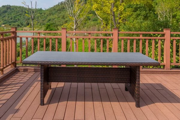Polyrattan Esstisch von OUTFLEXX® in braun marmoriert, ca. 220 x 100 x 75 cm