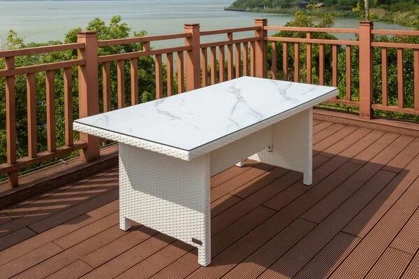 Polyrattan Esstisch von OUTFLEXX® in weiß, ca. 200 x 95 x 76,5 cm