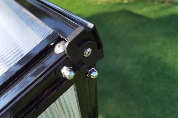 Der pulverbeschichtete Aluminiumrahmen und die ca. 4 mm dicken Hohlkammerplatten aus Polycarbonat sind extrem witterungsbeständig, stabil und robust. Für zusätzliche Stabilität und sicheren Halt sorgen die starken Kantenprofile. Die Polycarbonat-Platten bieten eine hohe Wärmedämmung, eine gute Lichtdurchlässigkeit und gleichzeitig einen ausreichenden UV-Schutz für Ihre Pflanzen, sodass kein zusätzliches Abschattieren mehr nötig ist. Passendes Montagematerial und eine anschauliche Montageanleitung sorgen für einen schnellen und einfachen Aufbau.