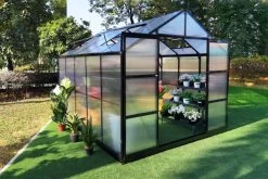 Maßgeblich gekennzeichnet durch ein edles, schwarzfarbenes Aluminiumgestell und fast transparente Seiten- und Dachteile macht dieses Gewächshaus in jedem Garten eine gute Figur und bietet Ihren Pflanzen dabei ein geschütztes Leben weitab von lästigen Schädlingen und Wind. Dieses formschöne Gewächshaus bietet aber nicht nur Ihren Pflanzen ein schönes Plätzchen, sondern spendet auch Ihnen einen Zufluchtsort vom Alltag, an dem Sie einfach mal die Seele baumeln lassen können.