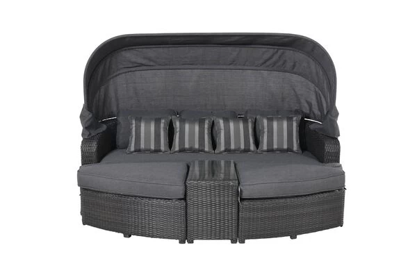 Loungebett-Set Houston von OUTFLEXX® aus Polyrattan-Geflecht mit Dach