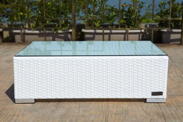 Für Ihre individuelle Gartengestaltung gibt es die ModulemelenteLine, deren einzelne Möbel alle variabel stellbar sind und sich vielfältig kombinieren lassen. Hier erhalten Sie den OUTFLEXX® Kaffeetisch in Weiß mit Glasplatte.