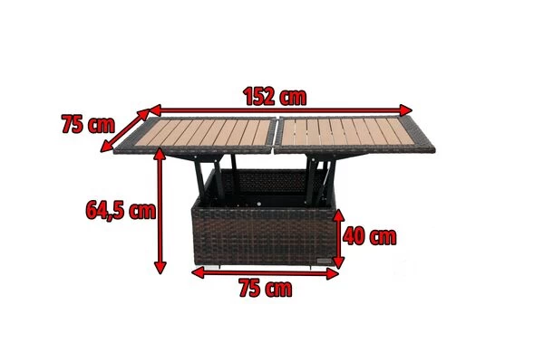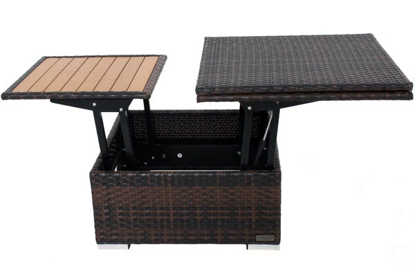 - 1x OUTFLEXX® Polyrattan höhenverstellbarer Loungetisch braun-marmoriert, 75/152x75x40/64,5cm, ca. 33 kg