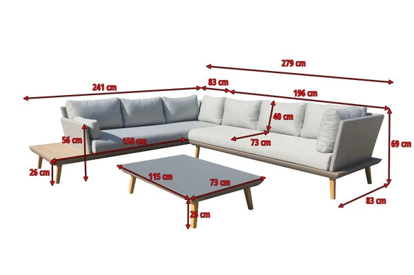 Die rechteckige Haube passt mit den Maßen von ca. 250 x 285 cm und einer Höhe von ca. 60 cm zu diversen Eckloungesets ab einer Größe von ca. 245 x 280 cm, z.B. zu folgendem Artikel: