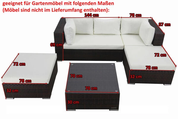 Das Abdeckhauben-Set passt zu Gartenmöbeln mit folgenden Maßen: