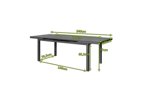 1x OUTFLEXX® Premium Ausziehtisch in anthrazit/grau, ca. 180/240 x 100 x 77 cm