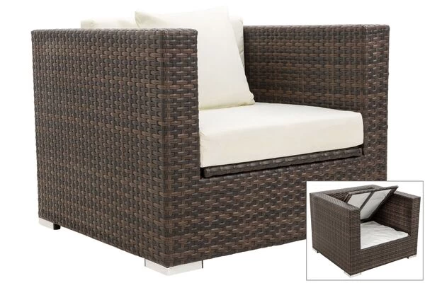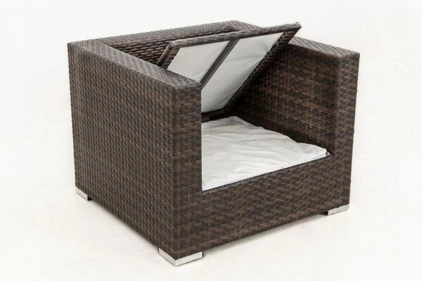ModulelementeLine: Polyrattan 1-Sitzer Sessel mit Kissenboxfunktion in braun-marmoriert