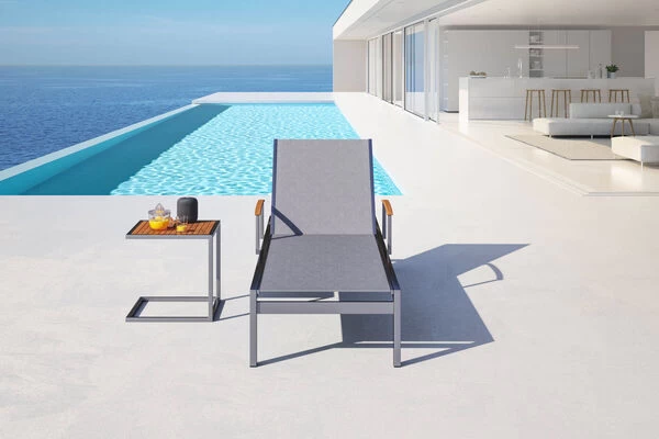 OUTFLEXX® Gartenliege mit passendem Beistelltisch aus Edelstahl und FSC®-Teakholz