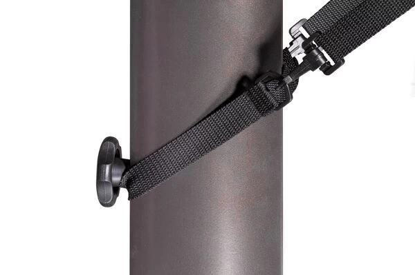 Die Windsicherung für Ampelschirme besteht aus mehreren Polyesterbändern, mit denen Sie die Bewegung Ihres Ampelschirms durch Wind stabilisieren können. Durch die Windsicherung wird zudem die Belastung auf das Schirmgestell Ihres Ampelschirms reduziert. Sie kann auch für weitere Ampelschirme genutzt werden, die eine Feststellschraube am unteren Mast haben. Bitte beachten Sie jedoch, dass Sie durch die Windsicherung keine Erhöhung der Standsicherheit Ihres Schirms erreichen. Die Abspannbänder haben eine Länge von ca. 140 – 270 cm, die Sicherung ist geeignet für Masten mit max. ca. 5,7 x 9,3 cm / Streben mit max. ca. 3 x 2 cm