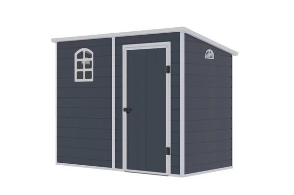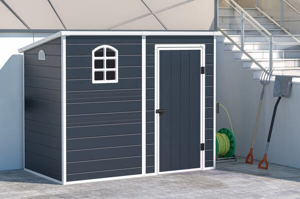 Der Türdurchgang des Gerätehauses hat eine Gesamtbreite von ca. 73,5 cm und eine Höhe von ca. 173 cm. Die Grundfläche des Gartenhauses beträgt ca. 6 m² und hat insgesamt 2 Lüftungsgitter und ein Fenster, was die Luftzirkulation im Gerätehaus ermöglicht. Die Wände und das Dach des Hauses tragen die Farbe anthrazit. Durch die gedeckte Farbe fügt sich das Gerätehaus dezent in seine Umgebung ein.