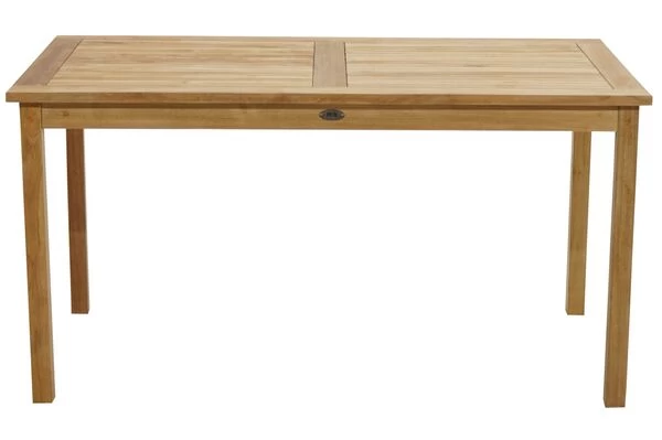 Ein komplett aus Teak gefertigter Gartentisch, der damit nicht nur besonders elegant aussieht, sondern auch ebenso robust wie witterungsbeständig ist – das bietet Ploß mit diesem Modell aus der Serie Memphis, der mit seiner rechteckigen Tischplatte mit Maßen von ca. 150 x 80 cm perfekt für vier Personen geeignet ist.