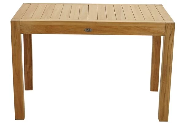 Für schlichtes Design und klare Linien sind eine ganze Reihe Serien des Herstellers Ploß bekannt – so auch die Modellreihe New Haven, der dieser Loft-Tisch mit den Maßen von ca. 120 x 80 x 77 cm entstammt. Der aus SVLK-zertifiziertem Teak gefertigte Tisch ist schlicht mit quadratischen, geraden Tischbeinen versehen und überzeugt durch den Naturton des Holzes optisch auf ganzer Linie.