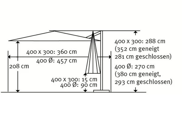 Der einteilige Stock aus Aluminium mit den Maßen von ca. 93 x 57 mm ist überdurchschnittlich stabil und trotzt den verschiedensten Witterungseinflüssen. Die 8 eingebauten Dachstreben aus Stahl mit den Maßen von ca. 25 x 17 mm sorgen zusätzlich für weitere Standfestigkeit. Zusätzlich zu diesem Ampelschirm erhalten Sie einen Plattenständer für Wegeplatten. Damit der Schirm sicher steht, beschweren Sie den Plattenständer mit Wegeplatten und auch hier macht sich das geringere Gesamtgewicht bemerkbar, denn zum Beschweren reicht nun ein Mindestgewicht von ca. 100 kg (Bitte beachten Sie: die Wegeplatten sind nicht im Lieferumfang enthalten!).