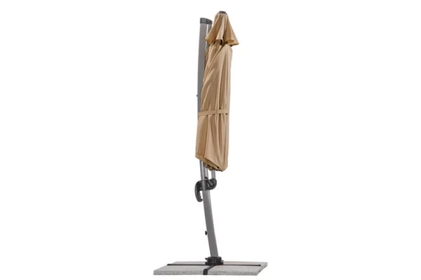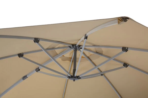 Sandfarbener Ampelschirm Rhodos Rondo für großartigen Sonnenschutz