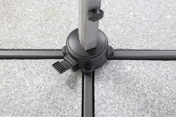 Wichtige Information: Dieser Schirm kann ohne Adapterplatte mit unseren OUTFLEXX Schirmständern oder dem OUTFLEXX Bodenanker kombiniert werden.