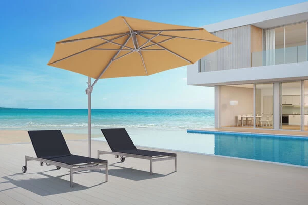 Der Ampelschirm Thassos von Schneider hat alles was ein Sonnenschirm braucht und überzeugt durch seine hochwertigen Materialien.