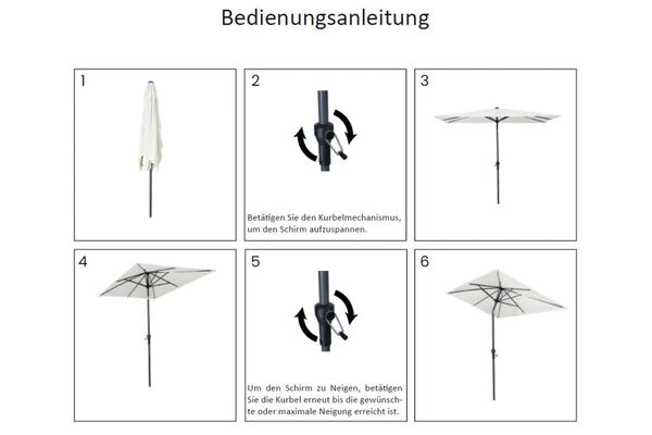 | Kurbelsystem Mit der integrierten Kurbelmechanik können Sie den Schirm ganz einfach öffnen und schließen. | |
